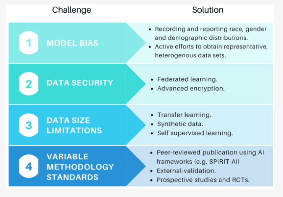 The promise of healthcare AI comes with several challenges, including ethical considerations, algorithmic fairness, data bias, governance and security. Developing ethical principles and frameworks is the subject of significant ongoing work in healthcare AI. Addressing these challenges and pursuing future directions such as explainable artificial intelligence (XAI), AI-driven drug discovery, and artificial intelligence-enhanced health care workforce will shape the pattern of artificial intelligence in the health care field, improve patient outcomes, strengthen health care services, and promote innovation in the next few years.