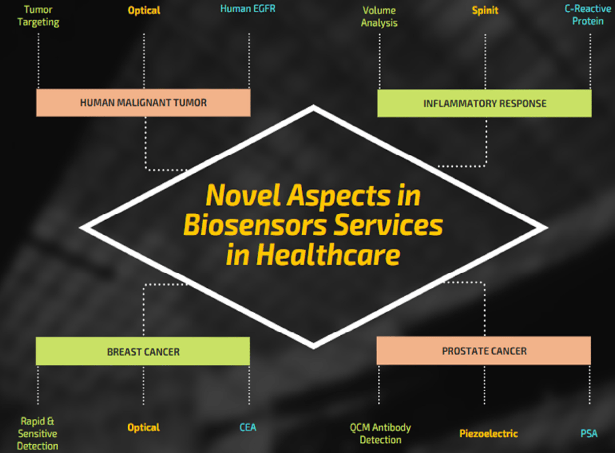 Biosensors' distinctive capabilities in healthcare services enable tumor targeting, antibody detection, and rapid, sensitive detections, empowering healthcare to new heights with excellent societal services.